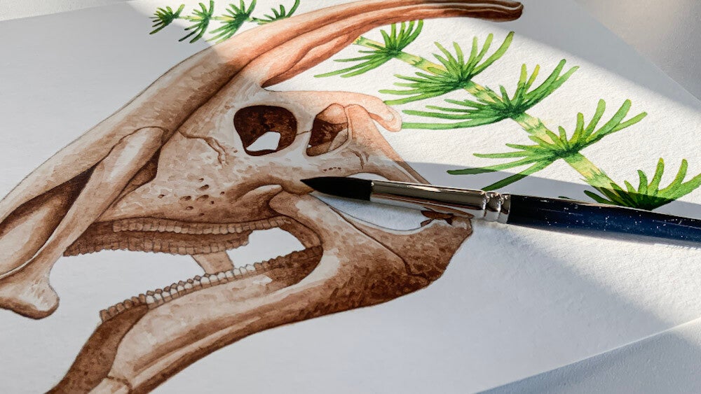 Willkommen in meiner kleinen, kreativen Welt. Am liebsten male und zeichne ich Motive aus der Natur und Paläontologie und meine Nase ist dabei meist maximal 10 Zentimeter vom Papier entfernt.