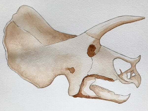 Herzlichen Glückwunsch! Du hast deinen eigenen Triceratops Schädel in Aquarell gemalt. Ich hoffe, diese Anleitung hat dir geholfen und du hattest Spaß dabei, diesen prähistorischen Freund auf Papier zu bringen. Mit den fünf Schritten - Vorzeichnen, Fläche füllen, erste Schatten setzen, Schatten ausarbeiten und Details hinzufügen - hast du ein beeindruckendes Kunstwerk geschaffen. Denk daran, dass Übung den Meister macht, also zögere nicht, deine Fähigkeiten weiter zu entwickeln und deine eigene künstlerische Interpretation einzubringen.